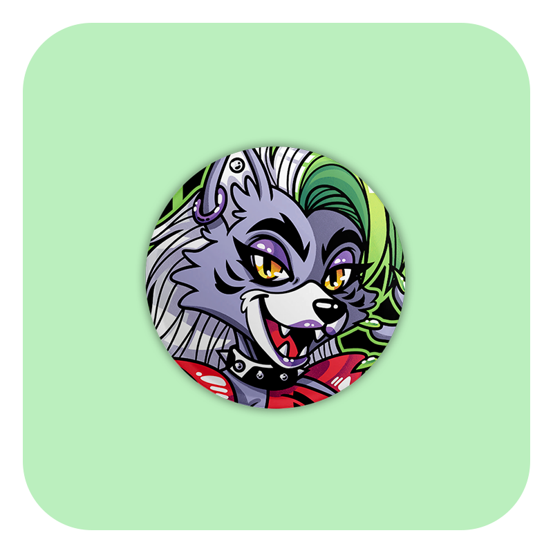 These badge buttons feature my artwork printed at a compact size, making them ideal for adding a small pop of personality to jackets, bags, lanyards, or display boards.