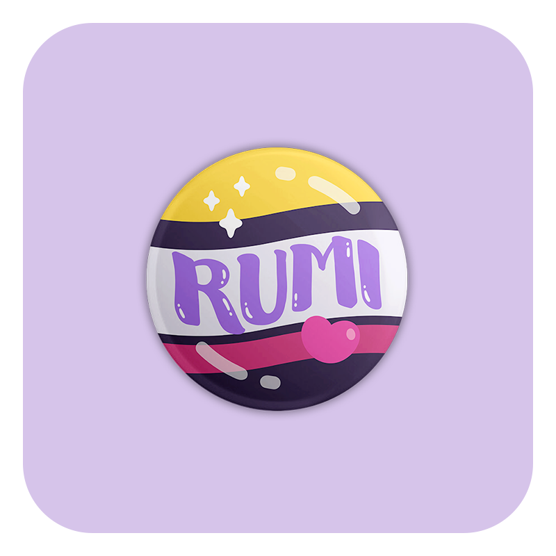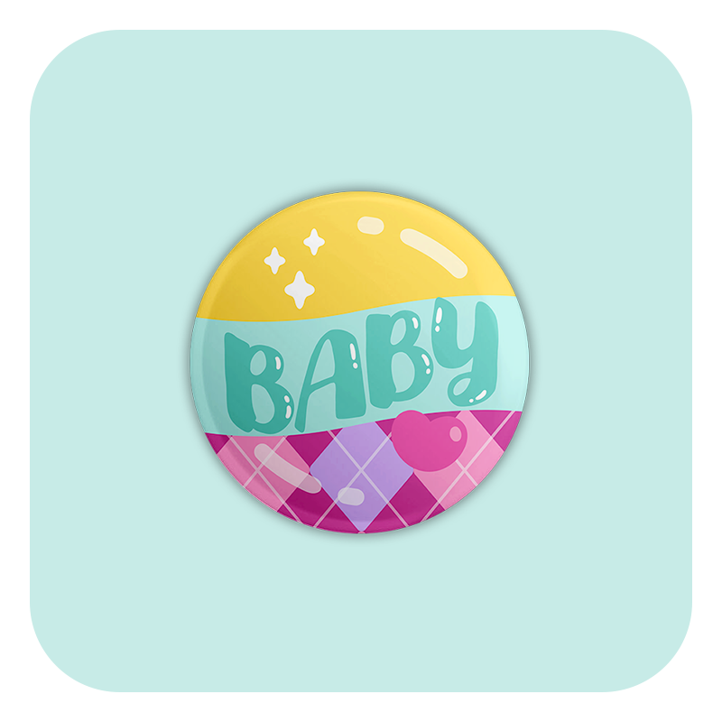These badge buttons feature my artwork printed at a compact size, making them ideal for adding a small pop of personality to jackets, bags, lanyards, or display boards.