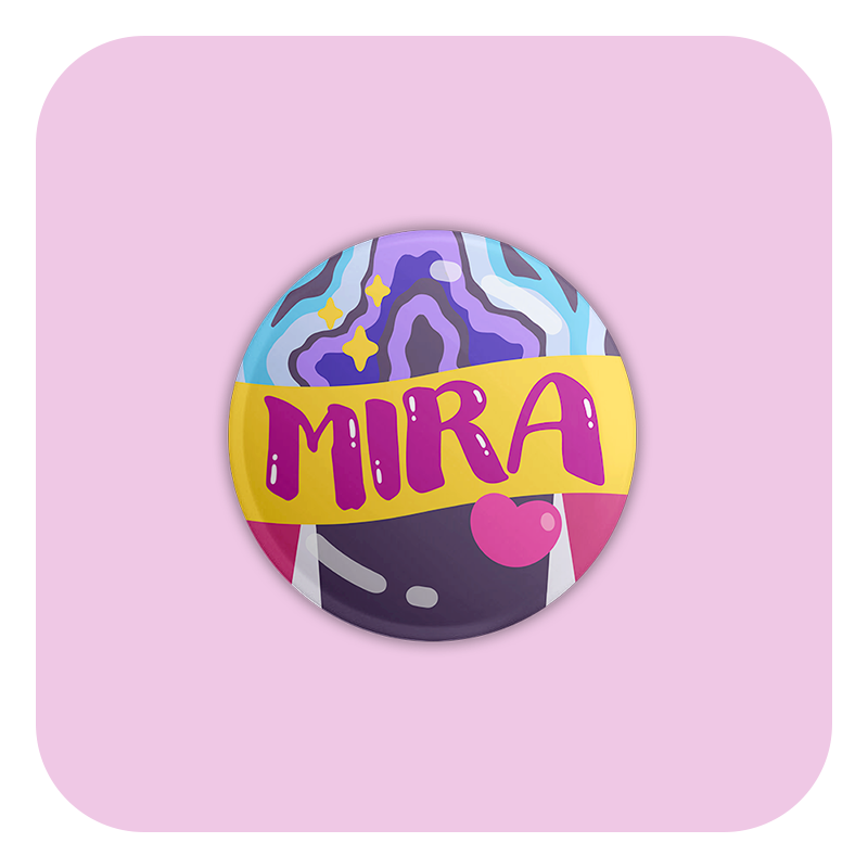 These badge buttons feature my artwork printed at a compact size, making them ideal for adding a small pop of personality to jackets, bags, lanyards, or display boards.