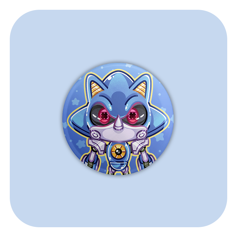 These badge buttons feature my artwork printed at a compact size, making them ideal for adding a small pop of personality to jackets, bags, lanyards, or display boards.